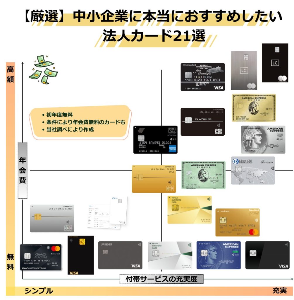 ここからは、数ある法人・ビジネスカードの中から、中小企業に本当におすすめできるカード21枚を厳選してご紹介します。