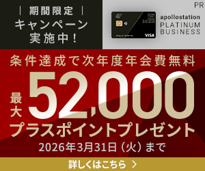 apollostation PLATINUM BUSINESSは、年会費22,000円で国内0.8パーセント・海外1.0パーセントという高いポイント還元を備えた法人向けプラチナカードです。