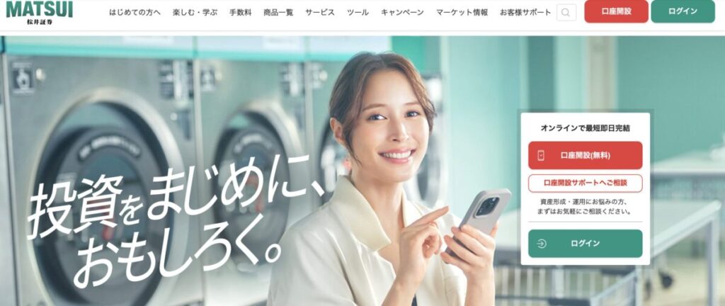 松井証券は、創業100年を超える歴史を持つ老舗でありながら、ネット証券の先駆けとして革新的なサービスを提供し続けています。1日の約定代金が50万円以下なら手数料が無料となるボックスレート制を採用しており、少額投資メインの初心者には非常に使い勝手が良いです。