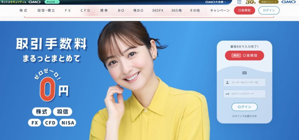 GMOクリック証券は、業界最安水準の手数料と、高機能な取引ツールでアクティブトレーダーから高い評価を得ている証券会社です。特にFX取引高で世界トップクラスの実績を持ち、株式だけでなくFXやCFDなど幅広い金融商品に投資できます。