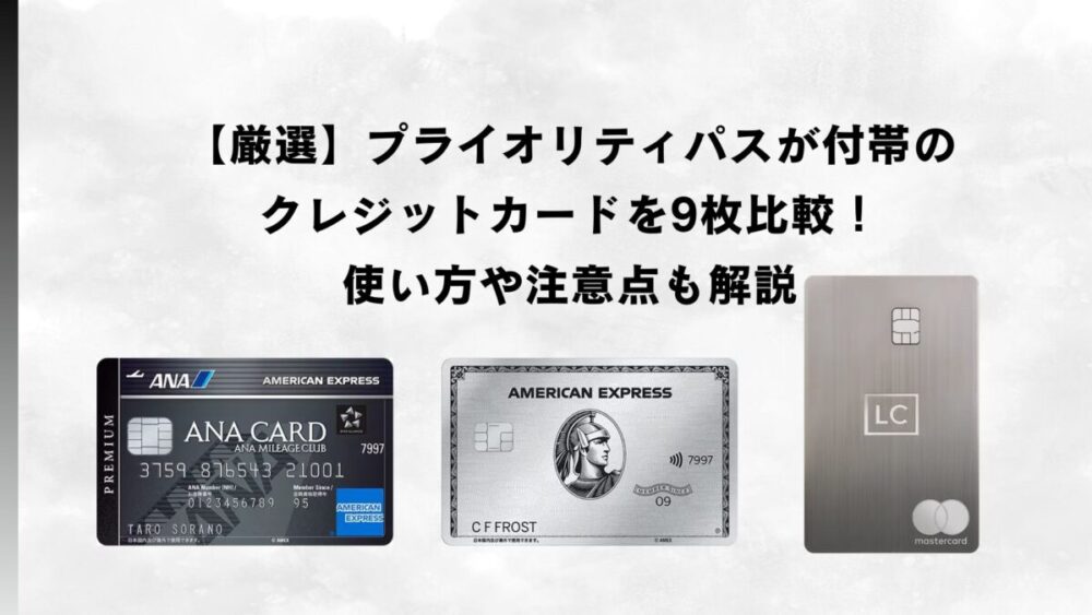 ここでは、プライオリティ・パスが付帯するおすすめのクレジットカードを9枚ご紹介します。