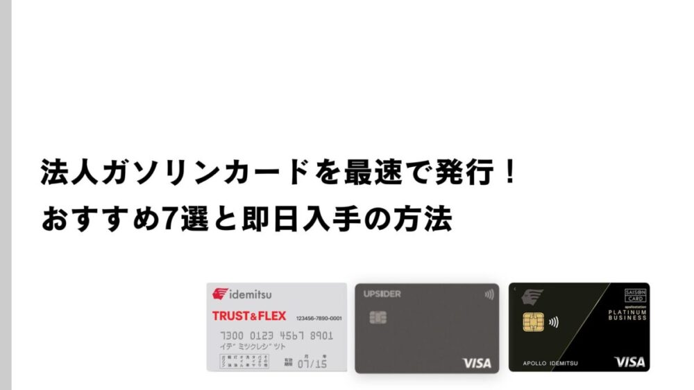 ここからは、最速で手に入れられるおすすめの法人ガソリンカードとクレジットカードを7つ厳選してご紹介します。各カードの特徴や発行スピードを比較して、自社に最適な1枚を見つけてください。