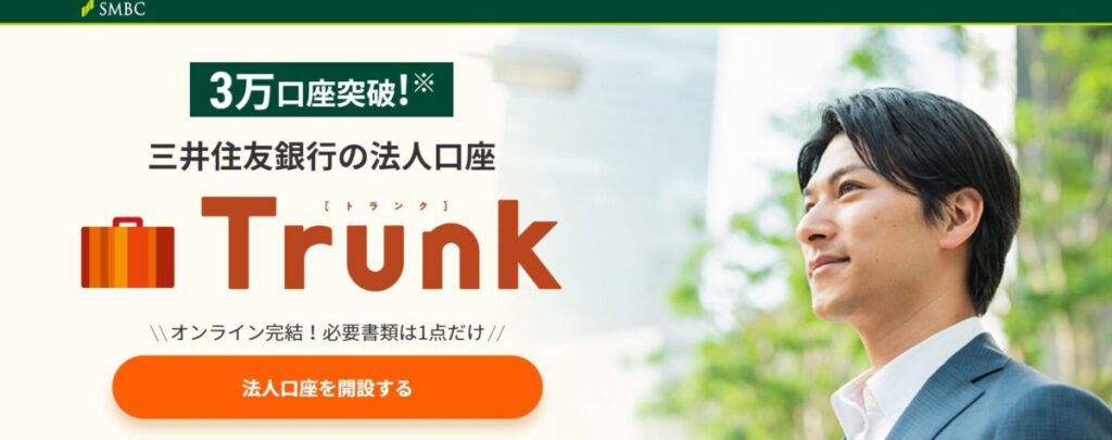 社会的信用を重視する法人にとって、メガバンクの三井住友銀行は重要な選択肢です。三井住友銀行が提供するTrunkは、メガバンクでありながらネットバンキングの月額基本料が無料になるプランが用意されている点が特徴です。