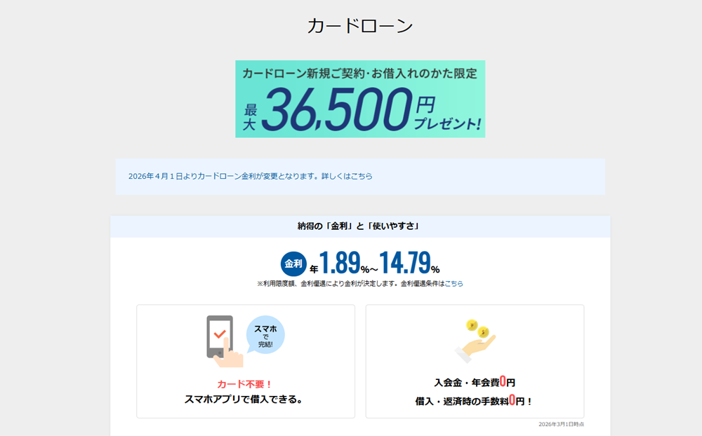 | 金利(実質年率) | 1.89%~14.79% |