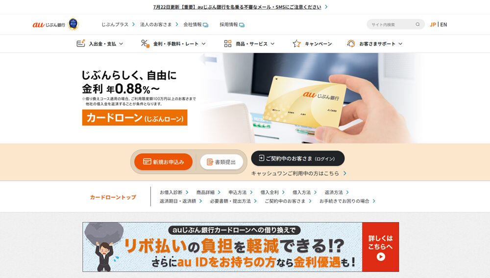- auじぶん銀行カードローン|借り換えコースは上限金利が13.0%