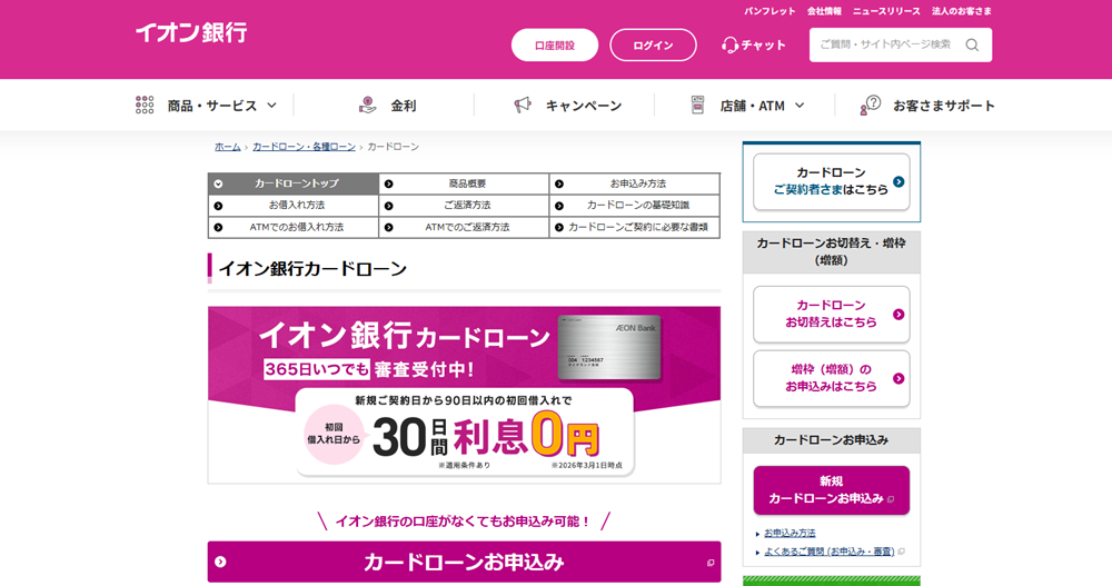- イオン銀行カードローン|上限金利が年13.8%と低水準